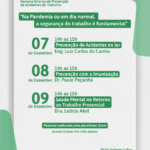 Prezados colaboradores, A III Sipat – Semana Interna de Prevenção de Acidentes do Trabalho está chegando! Entre os dias 07 e 09/12 ocorrerão diversas palestras online abordando a temática “Na Pandemia ou em dia normal, a segurança do trabalho é fundamental”, desde prevenção a acidentes no lar, cuidados a serem mantidos mesmo após a imunização e também como conduzir o retorno ao trabalho presencial de maneira cautelosa e eficiente. As palestras ocorrerão via plataforma Zoom, com limitação de 100 pessoas por evento. Não serão necessárias inscrições, basta clicar no link abaixo referente a cada encontro, na data e horário do mesmo. Fique ligado! PREVENÇÃO DE ACIDENTES NO LAR – ENG. LUIZ CARLOS Dezembro 7, 2021 02:00 PM Sao Paulo Join Zoom Meeting https://us06web.zoom.us/j/84102322049 Meeting ID: 841 0232 2049 PREVENÇÃO COM A IMUNIZAÇÃO – DR. PAULO PEÇANHA Dezembro 8, 2021 02:00 PM Sao Paulo Join Zoom Meeting https://us06web.zoom.us/j/82234601155 Meeting ID: 822 3460 1155 SAÚDE MENTAL NO RETORNO AO TRABALHO PRESENCIAL – DRA. LETICIA AKEL Dezembro 9, 2021 02:00 PM Sao Paulo Join Zoom Meeting https://us06web.zoom.us/j/82044850221 Meeting ID: 820 4485 0221