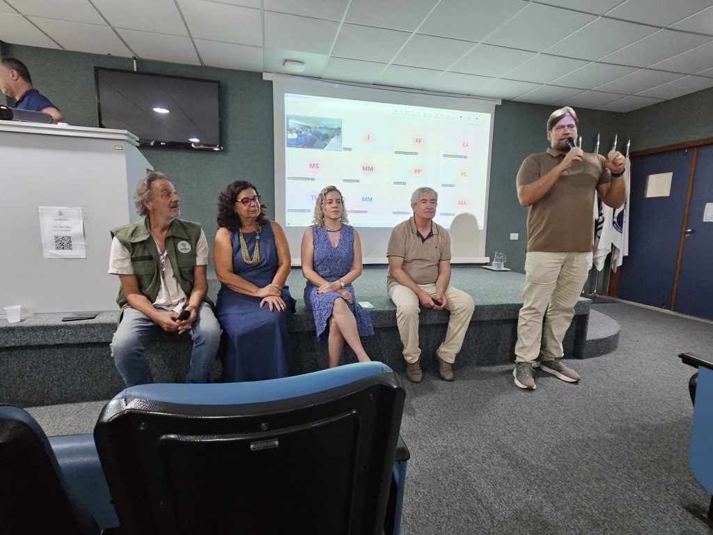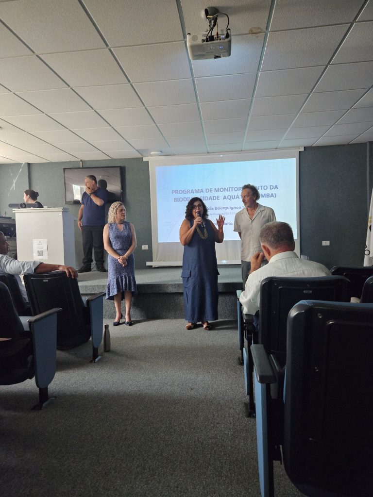 Durante a programação da manhã, foi apresentado um panorama do Projeto de Monitoramento da Biodiversidade Aquática, destacando metodologias, áreas de atuação e resultados já alcançados. A iniciativa tem como objetivo ampliar o conhecimento sobre os ecossistemas aquáticos, subsidiando ações de conservação e gestão ambiental com base científica.