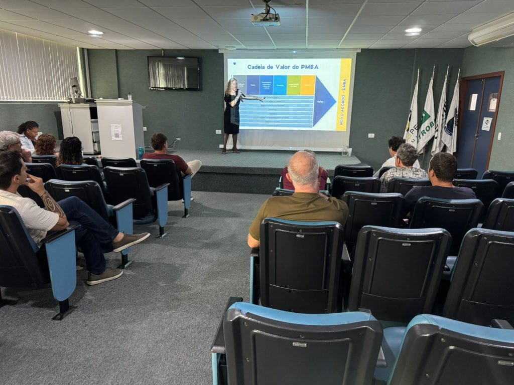 Durante o evento, os Gestores do PMBA apresentou a Cadeia de Valor do Programa e o Sistema de Gestão de Dados, detalhando fluxos de informação, governança, integração entre frentes de trabalho e os processos que sustentam a produção, organização e uso dos dados ambientais gerados pelo monitoramento.