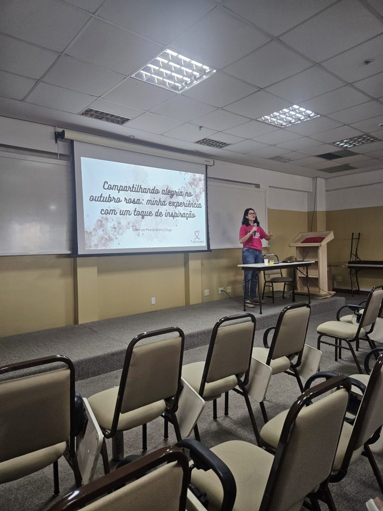 Na manhã desta sexta-feira (10), a Fundação Espírito-santense de Tecnologia (FEST) se vestiu de rosa para abraçar a causa do Outubro Rosa, mês dedicado à conscientização sobre a prevenção e o diagnóstico precoce do câncer de mama. O auditório da instituição recebeu uma palestra promovida pela AFECC – Associação Feminina de Educação e Combate ao Câncer, ministrada pela enfermeira Ana Paula N. Curty Stinghel, e um momento de profundo impacto emocional com o depoimento da colaboradora Sannya Britto, que compartilhou sua trajetória de superação contra a doença.